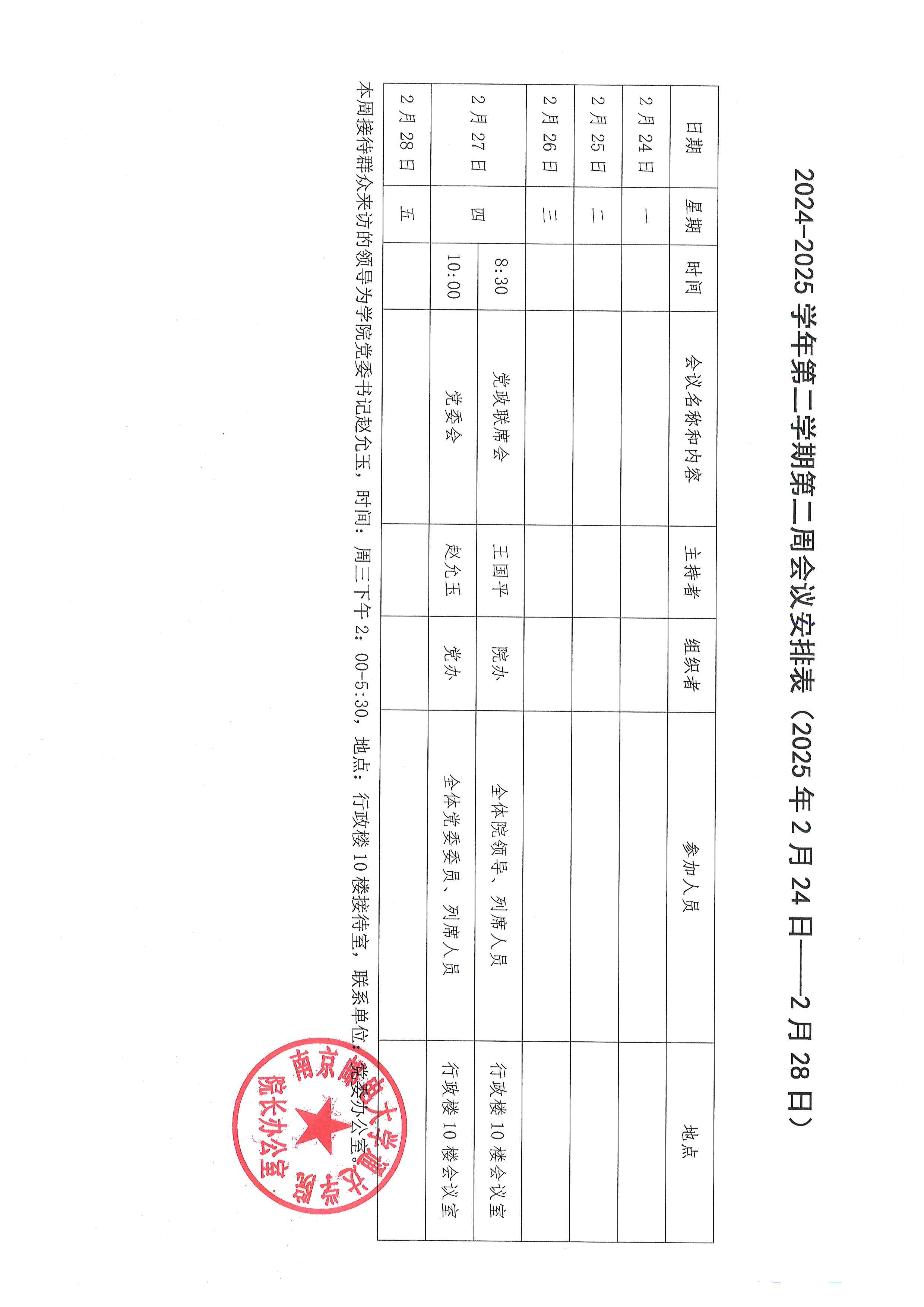 2024-2025学年第二学期第二周会议安排表