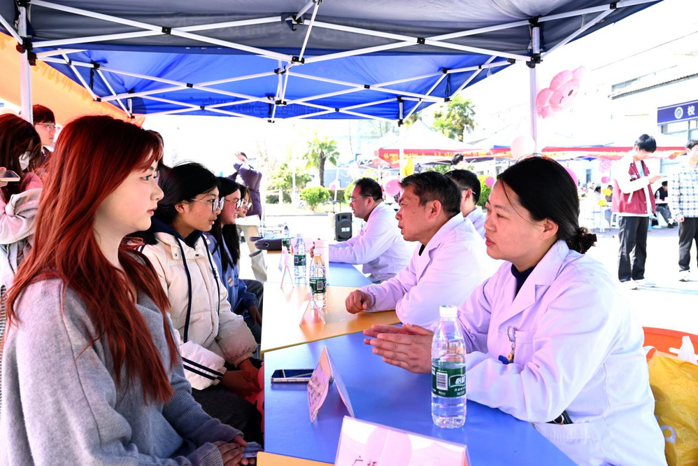 3月20日中午,来自江苏省扬州五台山医院的医学专家团队在一食堂广场为师生提供了免费睡眠咨询和义诊服务。专家们针对失眠、早醒、焦虑抑郁伴发失眠等常见睡眠问题,提供了个性化的诊疗建议,分享改善睡眠质量的有效方法,帮助师生解决因睡眠问题引发的心理困扰。