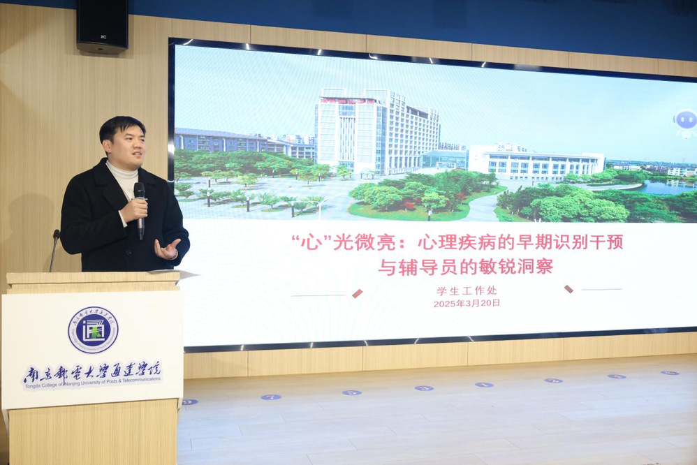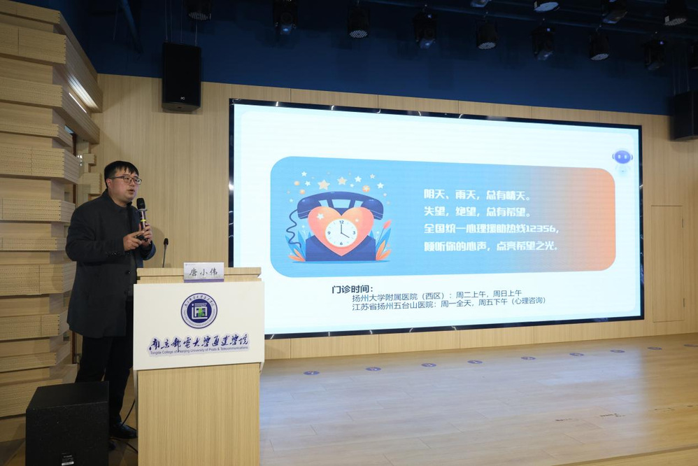 当天下午,江苏省扬州五台山医院唐小伟主任、孙金荣主任分别面向辅导员与学生群体开展了《“心”光微亮:心理疾病的早期识别干预与辅导员的敏锐洞察》、《觉察情绪,赋能心灵:在春天里遇见更好的自己》主题讲座。用专业知识为辅导员赋能,指导学生科学调节情绪,通过提高睡眠质量,促进身心和谐发展。