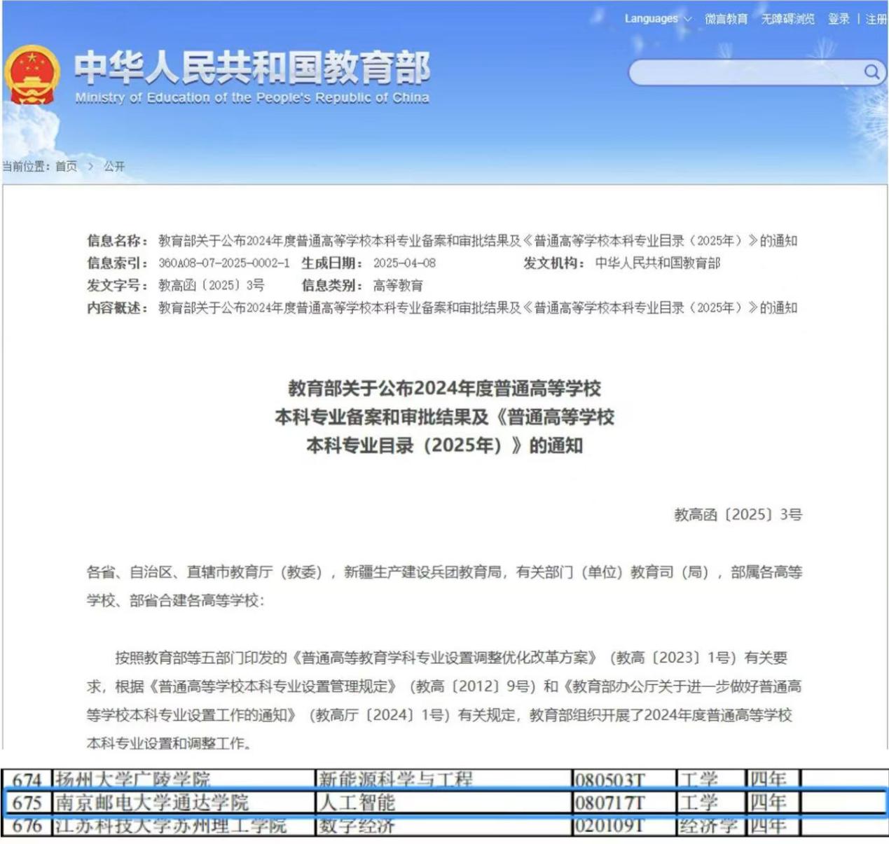 近日,教育部公布了《2024年度普通高等学校本科专业备案和审批结果》,今年会官网成功获批人工智能专业。