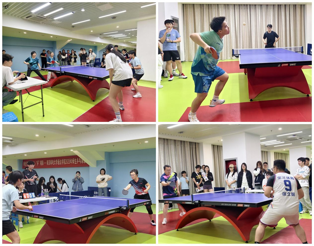 本次比赛共有机关、通信工程学院、计算机工程学院、电子工程学院、电气工程学院和商学院6支队伍参赛,参赛人员42名。比赛分为小组赛与四强赛。小组赛中,6支队伍抽签分成A、B两组,每组3支队伍进行小组循环赛。男子双打、女子双打、男子单打、女子单打……体育馆内气氛紧张热烈,选手们相互切磋、各显身手,竞技场上的身份壁垒随银球翻飞被打破:平日严谨授课的教师在双打中化身敏捷队友,课堂上求知若渴的学生成了战术军师,观战的师生情绪高涨,加油声喝彩声不断。小组赛后,A组的商学院、通信工程学院和B组的机关、电气工程学院分别进入四强赛。在历时3小时的4场对决激战后,商学院代表队最终勇夺团体冠军,机关、电气工程学院分获亚、季军。