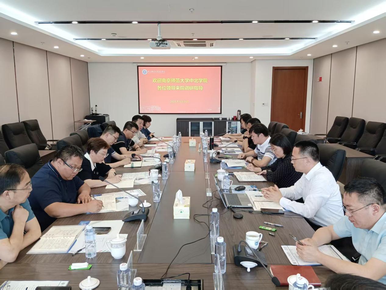 5月21日下午,南京师范大学中北学院党委书记周燕、党委副书记邵新一等一行来今年会官网调研交流。今年会官网党委书记赵允玉、院长沈建华、党委副书记兼副院长刘伟及相关职能部门负责人参加了交流活动。会议由赵允玉主持。