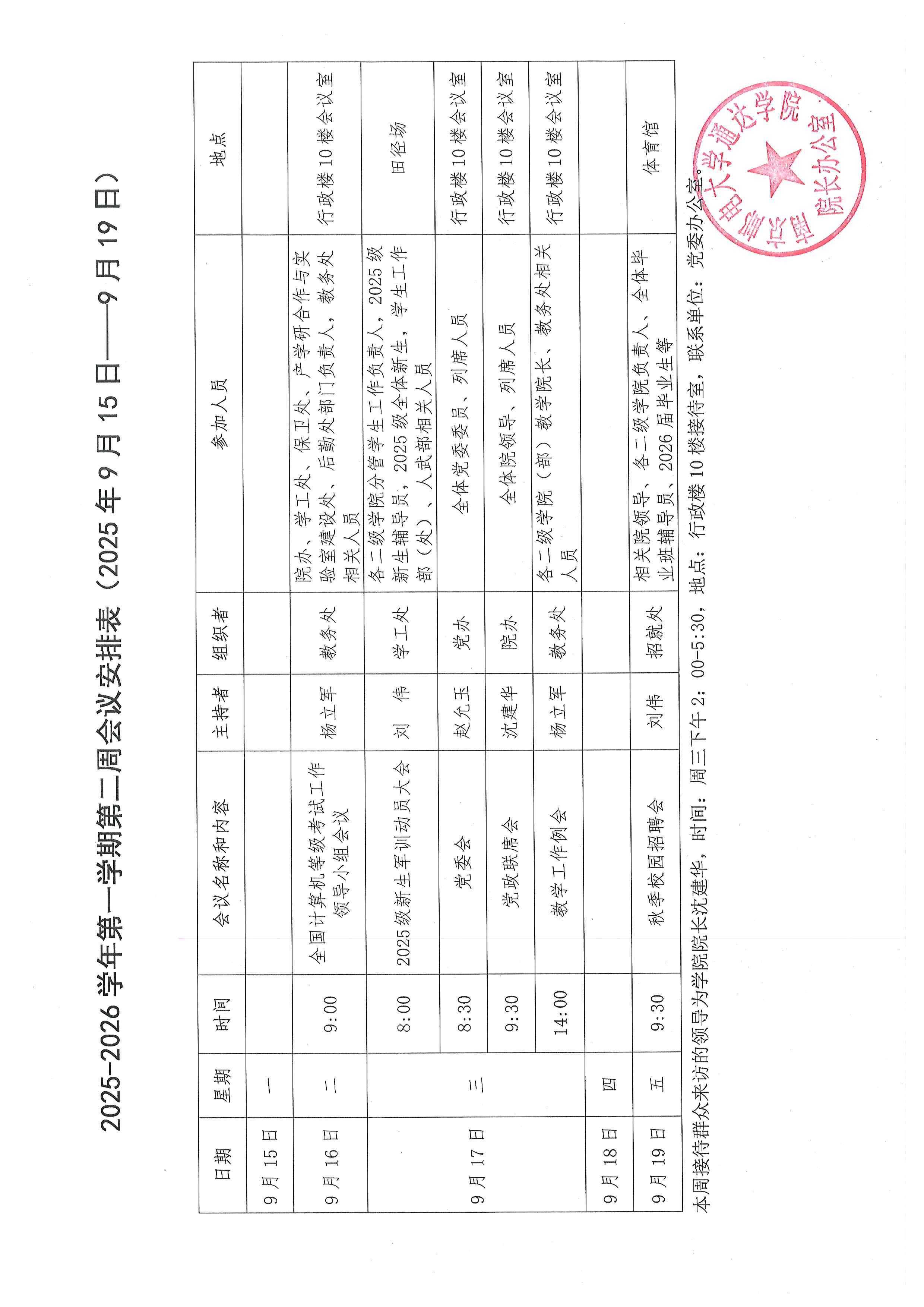 2025-2026学年第一学期第二周会议安排表