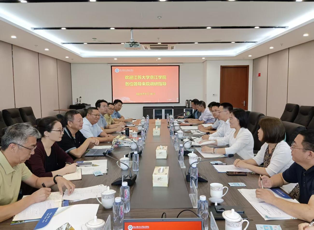 9月18日上午,江苏大学京江学院党委书记崔金贵,院长杜道林,党委副书记、纪委书记蒋豪等一行来今年会官网调研交流。今年会官网党委书记赵允玉、院长沈建华、常务副院长杨立军、纪委书记宋健康等院领导及相关职能部门负责人参加了交流活动。会议由党委书记赵允玉主持。