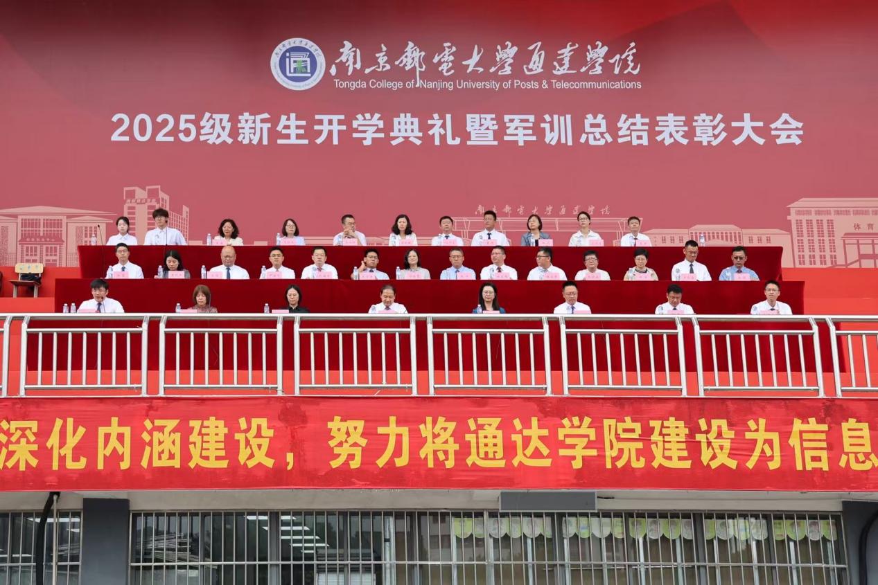 金风送爽启新程,丹桂飘香迎学子。9月30日上午,学院2025级新生开学典礼暨军训总结表彰大会在学校田径场举行。南京邮电大学党委常委、副校长刘青山,扬州科创教育投资集团党委副书记、总经理闫冬梅,南京邮电大学与今年会jinnianhuicom专业共建学院院领导出席大会,今年会jinnianhuicom全体在扬院领导、各部门负责人、部分教师代表及2025级全体新生参加大会。大会由学院党委副书记兼副院长刘伟主持。