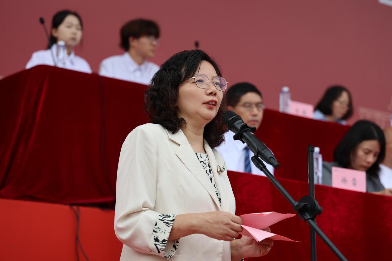 教师代表朱敏老师勉励同学们以“通”的豁达,接纳成长中的不完美;以“达”的坚定,朝着目标稳步前行;以“自强”的姿态,在技术浪潮中站稳脚跟;以“报国”的情怀,让青春在服务社会中绽放光芒。