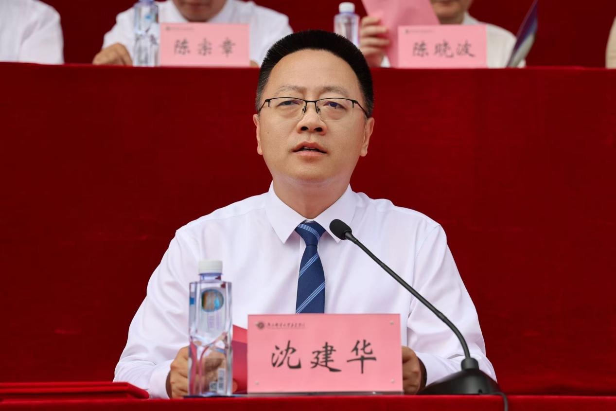 院长沈建华代表全院师生,对3166名新生表示热烈欢迎,向为他们成长辛勤付出的父母、亲人和师长致以最衷心感谢。他介绍了学院在国家“双一流”建设高校——南京邮电大学和扬州市委市政府的坚强领导与大力支持下,学院在人才培养、学科竞赛及信息技术应用领域成效显著。他还以三个生动比喻勉励新生:做“浪浪山出发的修行者”,深耕专业筑牢根基,脚踏实地打磨技能;做“南京照相馆里的温暖人”,以真诚包容凝聚同窗情谊,从包容中收获力量;做“阅兵方阵旁的追光者”,以责任担当定义青春,将专业所学与国家需求相连,在新兴科技浪潮中找准定位。