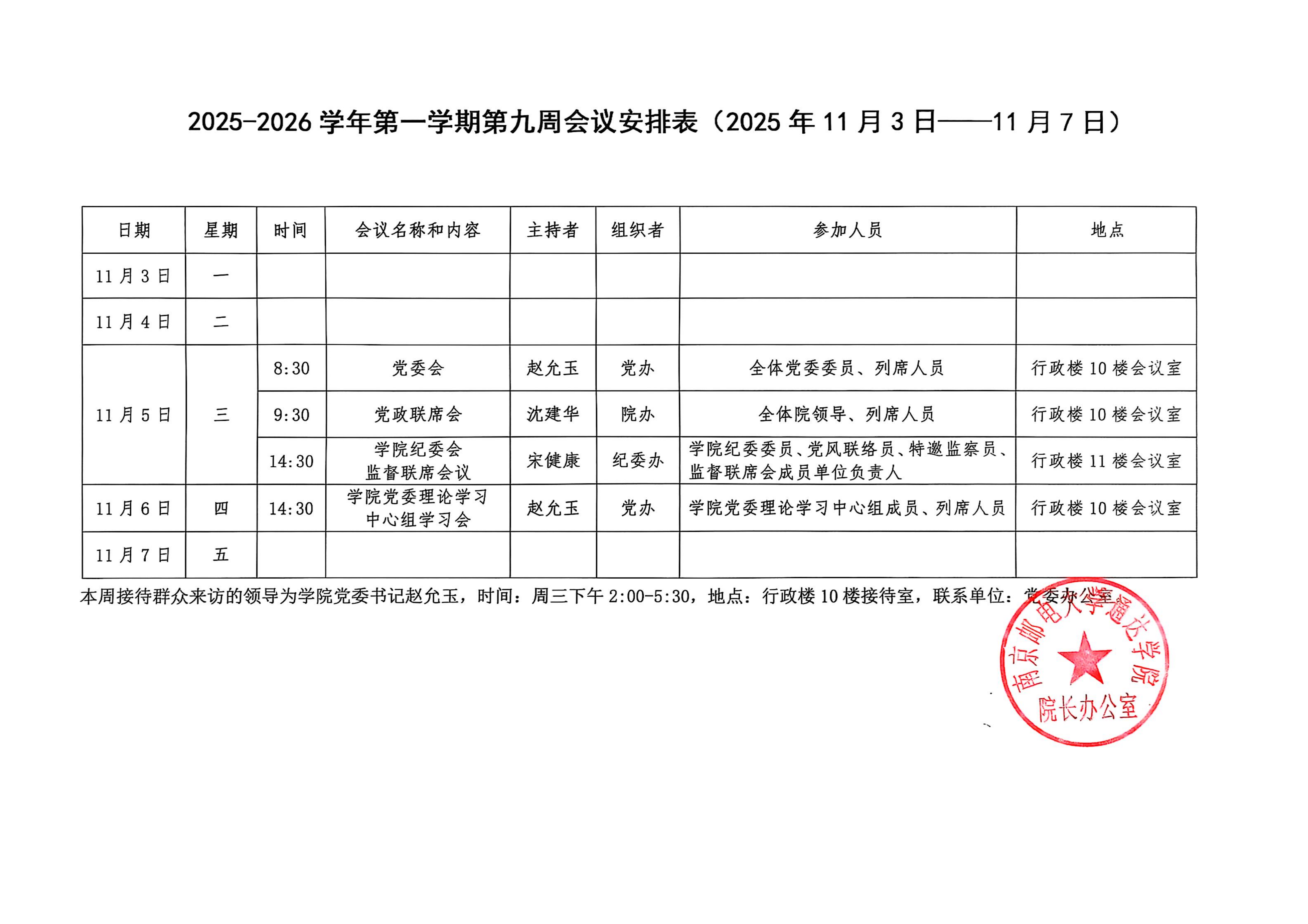 2025-2026学年第一学期第九周会议安排表