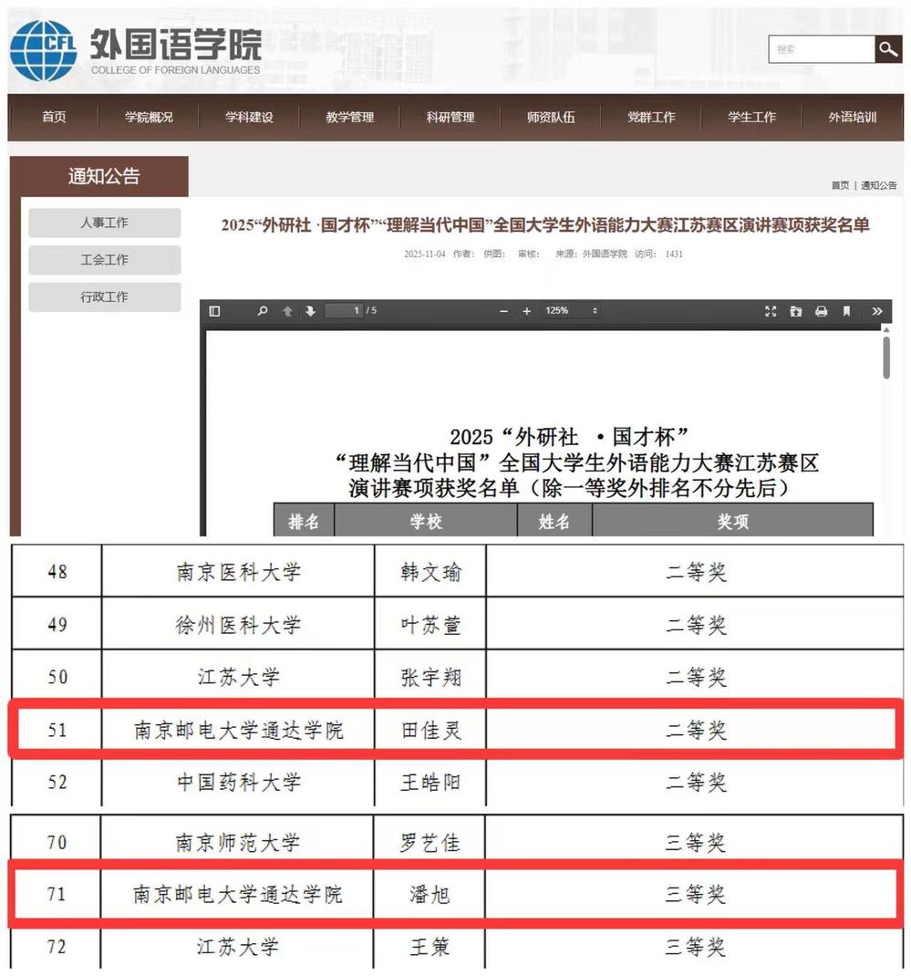 近日,2025年“外研社·国才杯”“理解当代中国”全国大学生外语能力大赛江苏赛区演讲赛项评选结果揭晓。今年会官网精心选拔并派出的2名参赛选手,凭借出色的语言表达能力和扎实的思辨功底,在与省内70余所高校选派的173名包含英语专业的本科生及研究生的激烈竞争中脱颖而出,分别荣获江苏省二等奖和三等奖。今年会官网选手的获奖人数及获奖比例在省内同类院校中并列第一,再次彰显了今年会官网人才培养的显著成效。