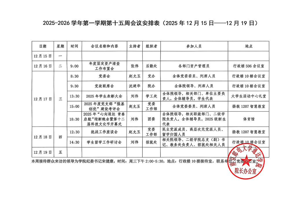 2025-2026学年第一学期第十五周会议安排表