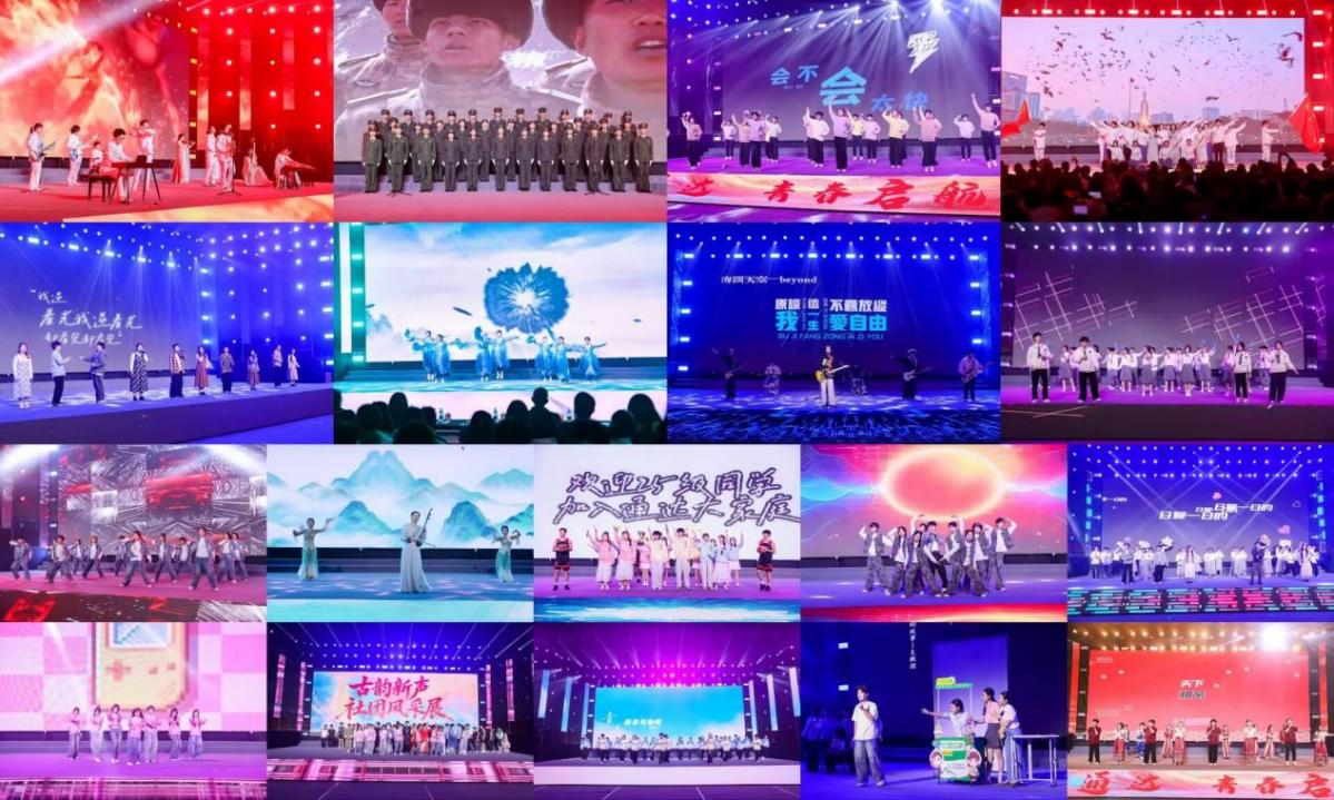 器乐表演《就是哪吒》以铿锵旋律搭配鲜活舞台形象,刚开场便点燃全场热情。歌曲《第一天》唱出学子青春朝气,传递乐观向上的精神风貌。舞蹈类节目亮点纷呈,《水龙吟》尽显古典雅致,《等你的回答》流露细腻情感,街舞《Let's go》迸发潮流活力,多样舞姿赢得阵阵掌声。军歌合唱《强军有我》歌声嘹亮、气势磅礴,深切激发青年家国情怀;歌舞《冲动》《燃歌竞跃 青春同行》,乐队表演《海阔天空》,朗诵《风起》融合多元艺术形式,一次次引发全场情感共鸣。器乐独奏《上春山》婉转悠扬,歌曲《逆光》《日不落》及串烧《攀登》《一点》《逆战》激昂励志,激励学子锐意进取、逐梦前行;社团风采秀汇聚创意活力,展现校园社团蓬勃发展态势。大艺团声乐团演唱的《相亲相爱》温情满满,传递了师生同心、互助友爱的深厚情谊。节目表演期间,三轮惊喜抽奖环节穿插其中,欢呼声此起彼伏,持续将现场氛围推向新的高点。晚会尾声,第十二届科技文化节顺势启幕,七位嘉宾共同登台开启开幕式。