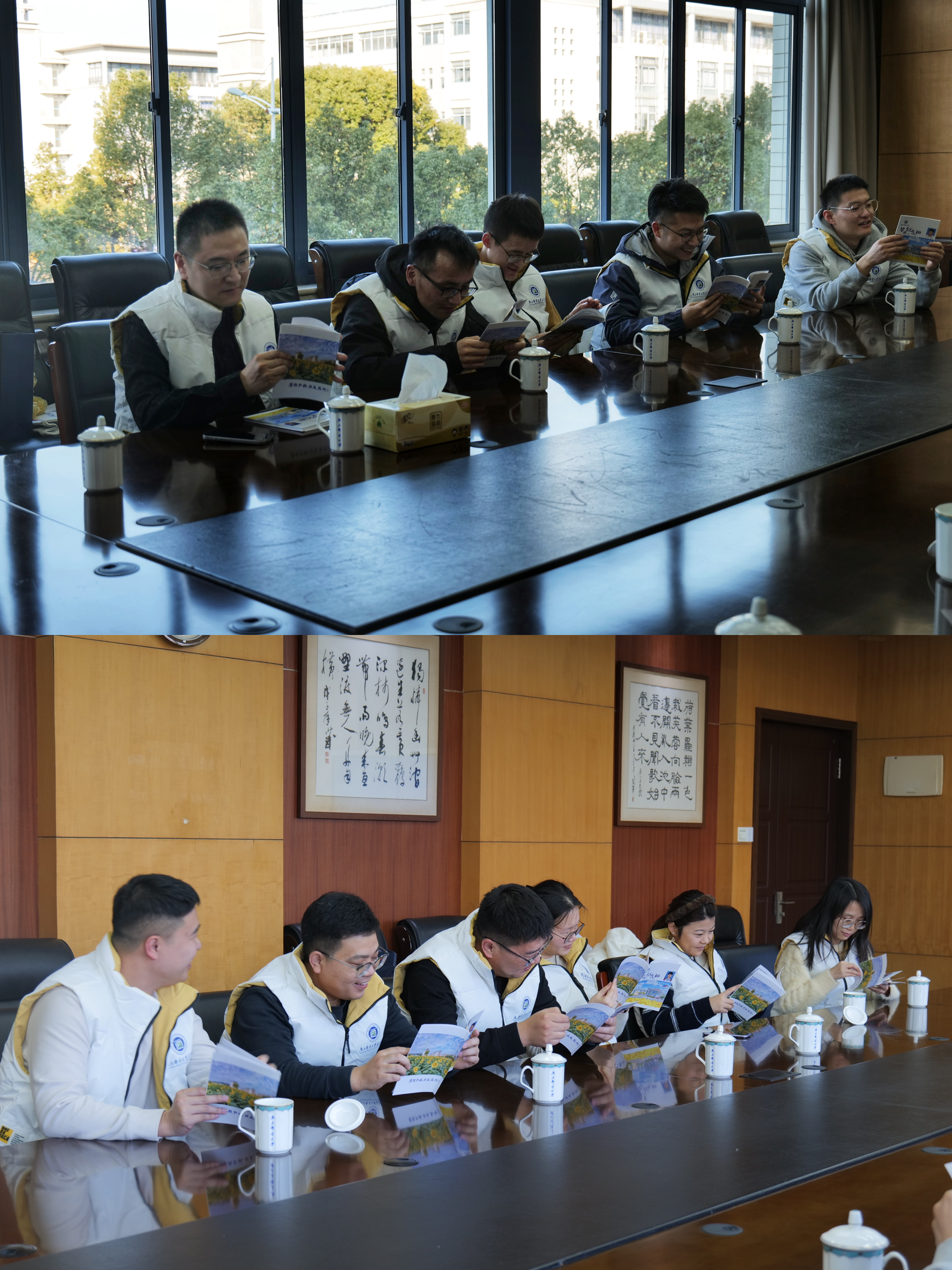 辅导员汤晓晨老师与校友代表们翻看纪念册