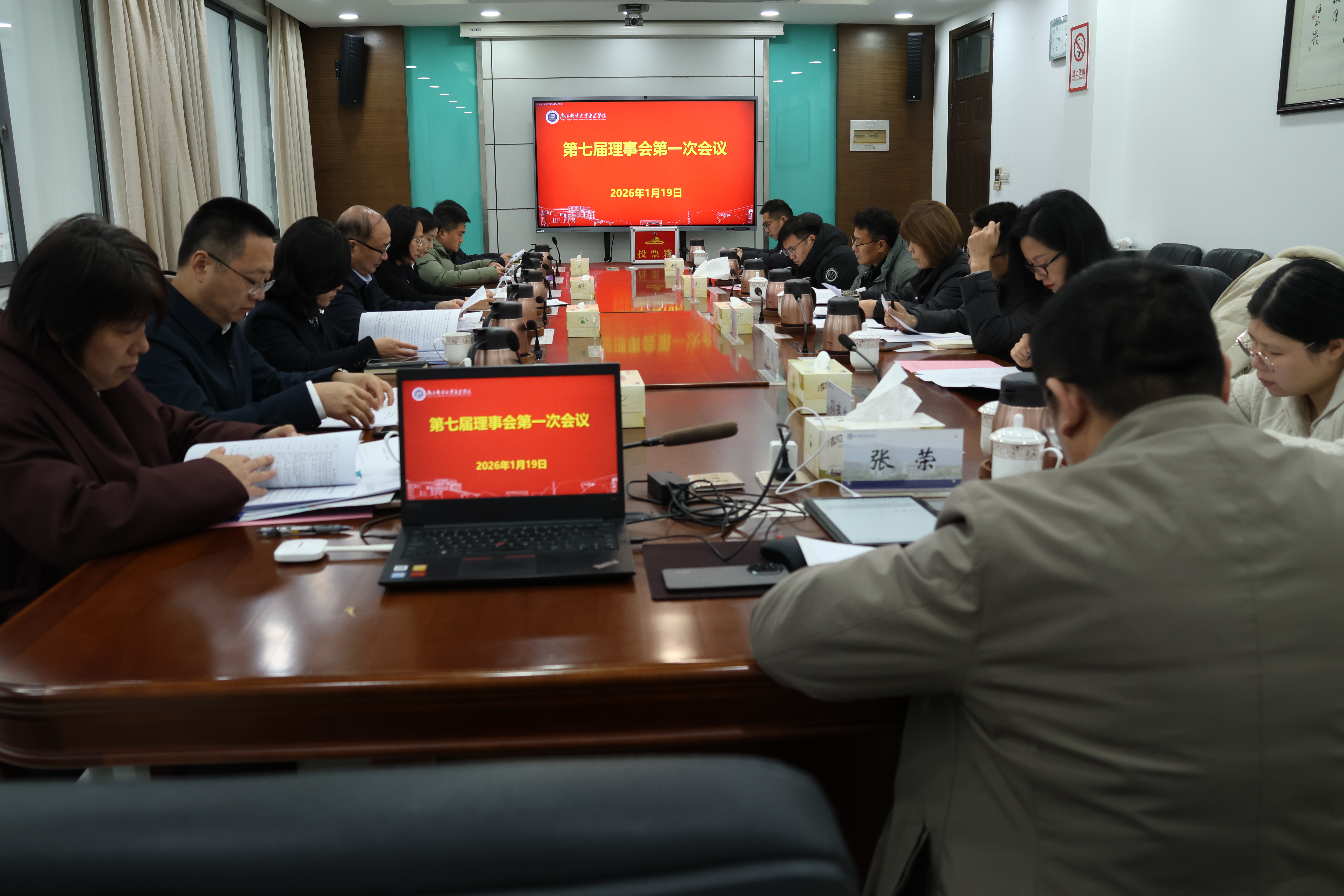 2026年1月19日,学院第七届理事会第一次会议在行政楼第一会议室召开。南京邮电大学校党委常委、副校长王友国出席会议,全体理事、监事参加会议,全体院领导列席会议。会议由学院理事长、党委书记赵允玉主持。