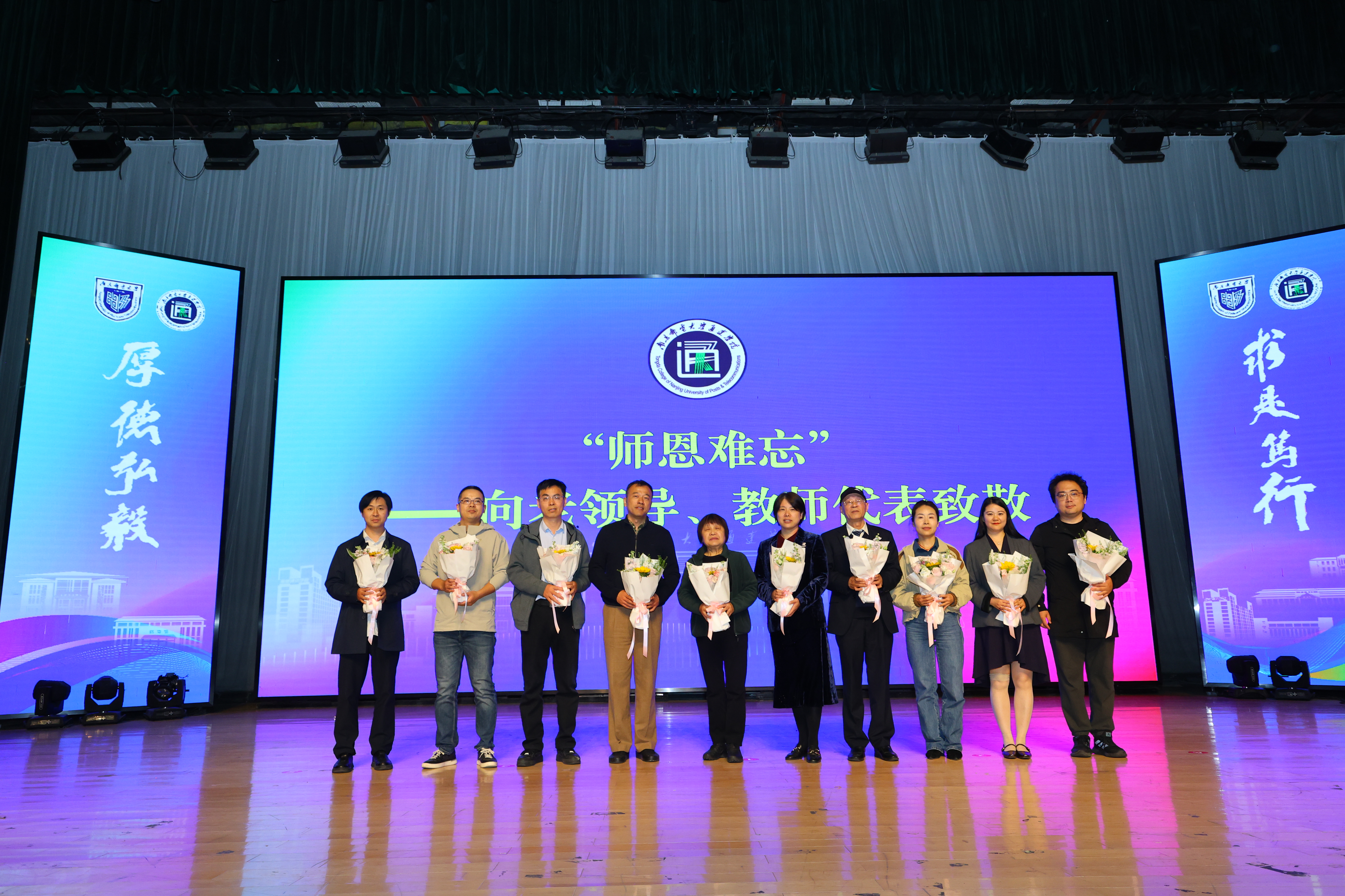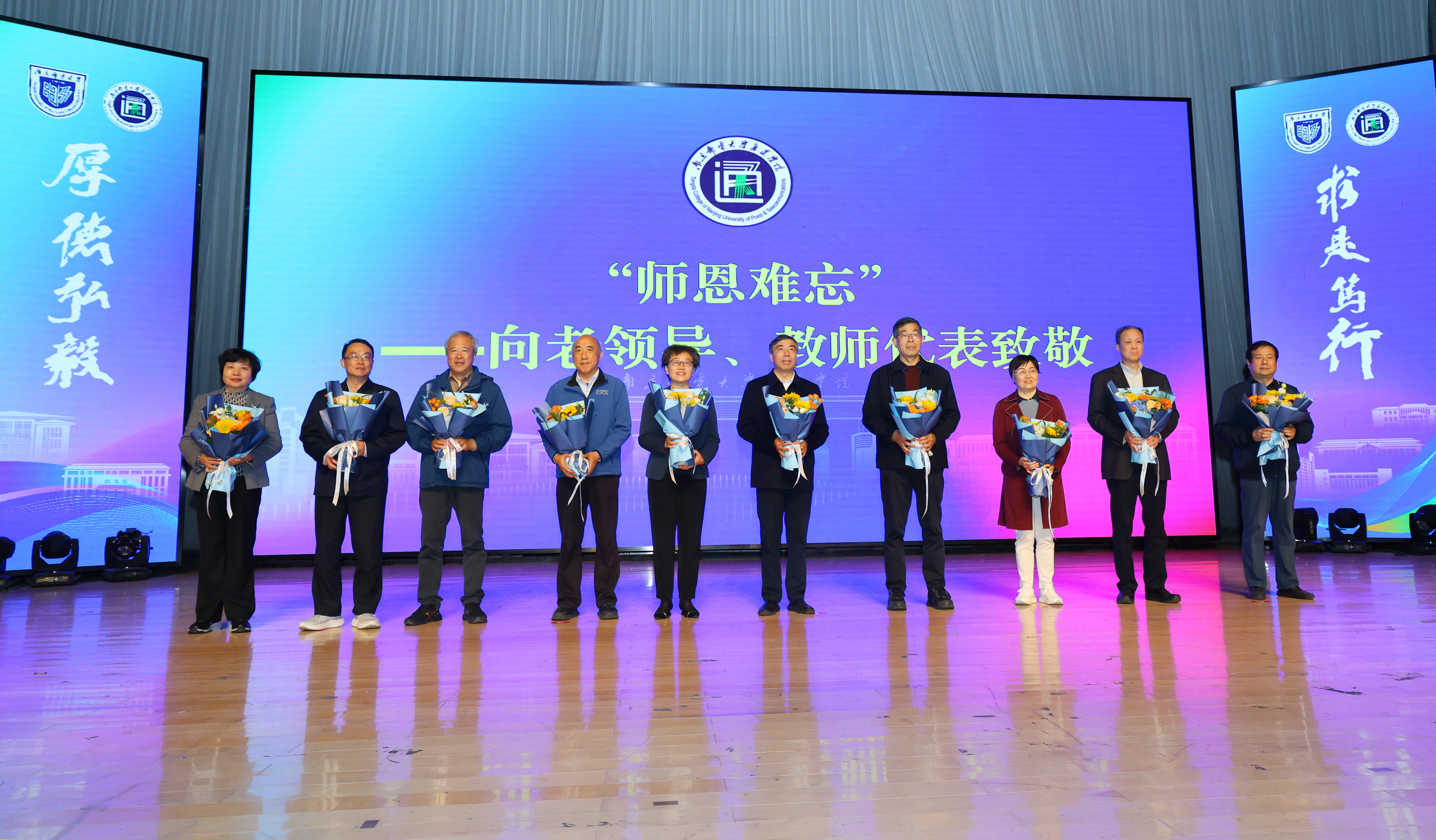 “师恩难忘”致敬环节中,学生代表向学院老领导、教师代表敬献鲜花,以质朴方式表达对恩师的诚挚感恩与美好祝福。