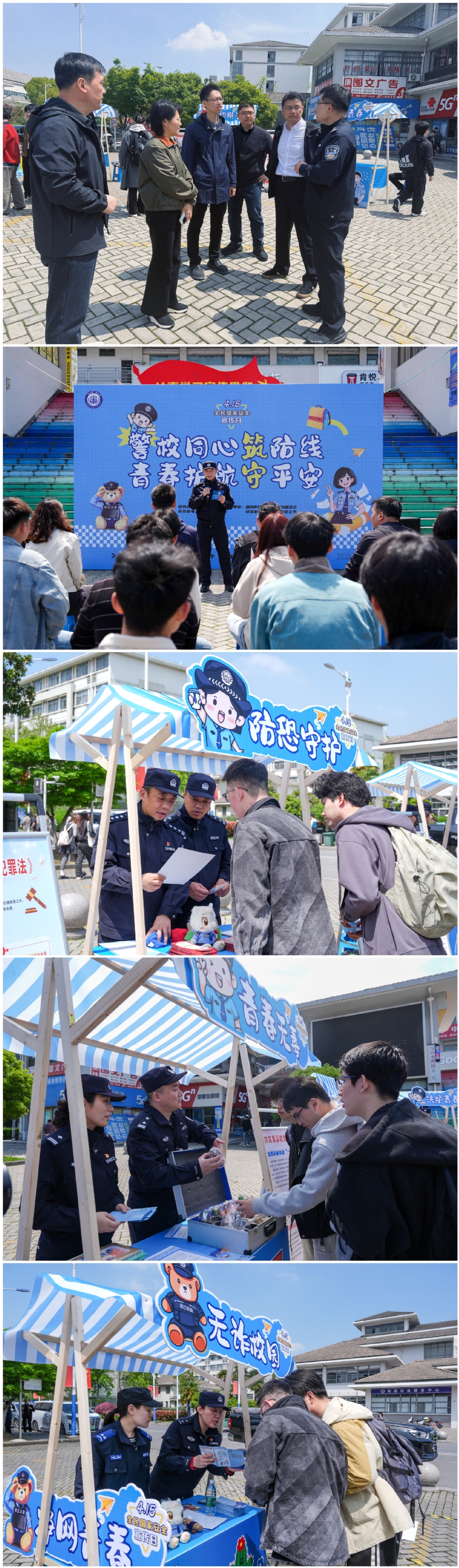 4月15日是我国第十一个全民国家安全教育日。学院紧扣“统筹发展和安全 护航‘十五五’新征程”主题,联合扬州市公安局邗江分局,由产学研合作与实验室建设处、保卫处、学生工作处共同组织,开展多种形式的安全教育宣传活动,推动总体国家安全观在师生中入脑入心、落地生根。